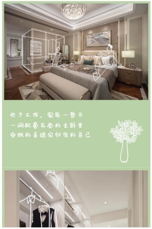 主臥小家化: 獨(dú)立衣帽間,奢華四件套衛(wèi)生間,3M大面寬開(kāi)窗,讓主臥成為第二個(gè)安心的小家。