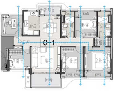 每個(gè)面積段均有利用生活陽(yáng)臺(tái)打造南北對(duì)流的戶型,創(chuàng)造優(yōu)越的通風(fēng)條件,為住戶提供清新生活環(huán)境。采用南向戶型最大化的設(shè)計(jì),在提供充足日照的同時(shí)也帶來(lái)良好的室內(nèi)通風(fēng)。南向開(kāi)窗設(shè)計(jì)兼顧大小與窗地比,爭(zhēng)取更多日照條件。每個(gè)戶型均設(shè)雙衛(wèi),滿足居家隔離健康要求。