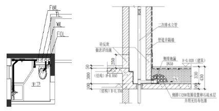 室內(nèi)污廢分流/沉箱二次排水剖面圖示意圖