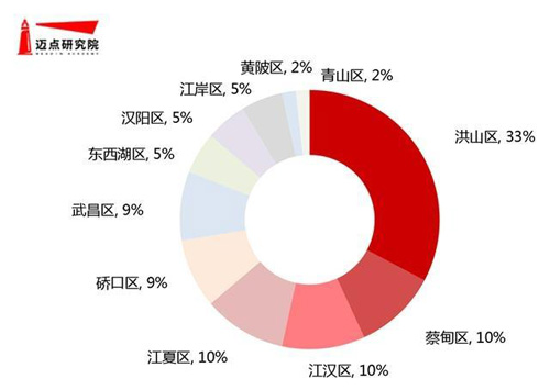 從集中式長租公寓品牌武漢區(qū)域分布來看,洪山區(qū)、蔡甸區(qū)、江干區(qū)、江夏區(qū)為武漢住房租賃熱點區(qū)域,長租公寓品牌MBI品牌指數TOP50中分別有33%、10%、10%和10%的品牌布局洪山區(qū)、蔡甸區(qū)、江漢區(qū)、江夏區(qū)。洪山區(qū)作為武漢市中心城區(qū)與新城區(qū)交界的郊區(qū),坐落著武漢大學、華中科技大學、華中農業(yè)大學、武漢學院等高校和花山生態(tài)新城、光谷關山地區(qū)、武漢軟件新城等園區(qū)基地,產業(yè)結構優(yōu)良,是武漢年輕人聚集熱點區(qū)域,因此地鐵2號線、7號線沿線街道口、虎泉、南湖、魯巷區(qū)域是集中式長租公寓落地重點區(qū)域。