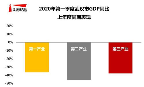 武漢作為此次新冠疫情爆發(fā)的中心,期間經濟發(fā)展和社會活動遭受較大影響,武漢市統(tǒng)計局數據顯示,2020年一季度,武漢市地區(qū)生產總值(GDP)按可比價格計算,比上年同期下降40.5%。其中,第一產業(yè)增加值下降36.4%;第二產業(yè)增加值下降45.4%;第三產業(yè)增加值下降37.7%;服務業(yè)生產緩慢,租賃和商務服務業(yè)同比下降43.4%,相比其他行業(yè),租賃和商務服務業(yè)所受影響相對較小,降幅分別小于全行業(yè)平均水平32.2和14.2個百分點。