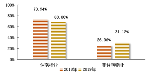 圖:2018-2019年百強(qiáng)企業(yè)住宅和非住宅業(yè)態(tài)的管理面積占比情況