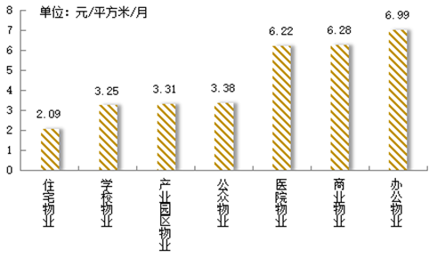 其次,從物業(yè)費(fèi)來看,非住宅業(yè)態(tài)物業(yè)費(fèi)普遍高于住宅物業(yè)。