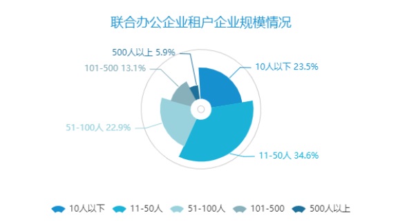 另一方面,從入駐聯(lián)合辦公的租戶構(gòu)成來看,中小型企業(yè)屬群仍占據(jù)了重要位置。數(shù)據(jù)顯示,50人以下的小微形企業(yè)租戶占比達(dá)到58.1%,而近來越發(fā)被重視的大中型企業(yè)客戶屬群占比卻僅為19%。租戶的結(jié)構(gòu)比重失衡使得聯(lián)合辦公企業(yè)在這次市場沖擊中所受到的影響更為明顯。