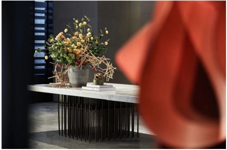 沙盤區(qū)運(yùn)用抽象線條打破物象意義的羈絆,以簡(jiǎn)潔、干凈回應(yīng)現(xiàn)代人的理性、克制。深樸悅設(shè)計(jì)借藤蔓花枝的生動(dòng)真實(shí),重現(xiàn)錦官城的樸實(shí)、繁華。來自英國(guó)的雕塑作品Nick Moran現(xiàn)代而充滿力量,呈現(xiàn)的秩序美,宛如成都固有的繁花霖霖與綻放盛貌。