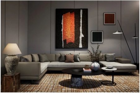 售樓空間中,藝術(shù)品承擔(dān)了空間故事的講述者,營(yíng)造了多處不同感受。擺臺(tái)上抽象意念的蜀錦與古件,如臨錦城,抿一抹絲綢之路所想。