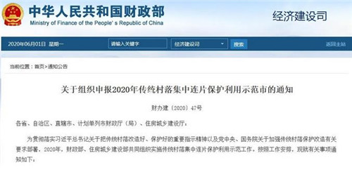 財(cái)政部官網(wǎng)5月28日消息,財(cái)政部辦公廳和住房城鄉(xiāng)建設(shè)部辦公廳近日聯(lián)合發(fā)布通知,組織申報(bào)2020年傳統(tǒng)村落集中連片保護(hù)利用示范市。據(jù)了解,中央財(cái)政將對(duì)每個(gè)示范地區(qū)給予1.5億元定額補(bǔ)助。