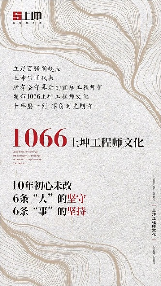 匠心與品質(zhì),在上坤地產(chǎn)的眼中,從來都不是一句空話,“1066設(shè)計師文化”便是最好的力證。何為“1066”?勇于擔(dān)當(dāng)、專業(yè)匠心、積極主動、陽光向上、堅持原則、誠實善良、責(zé)無旁貸、精益求精、使命必達、勤于思考善于溝通、精于業(yè)務(wù)勇于挑戰(zhàn)。6則“人之堅守”,6則“事之堅持”,52個字,凝聚著上坤十年磨一劍的堅守,也是上坤地產(chǎn)立足百強新起點,不負(fù)時光期許的宜居初心。
