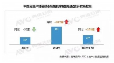 據(jù)奧維云網(wǎng)(AVC)地產(chǎn)大數(shù)據(jù)顯示,2019年1-4月,50強(qiáng)開(kāi)發(fā)商更熱衷于智能家居配套,配套率高達(dá)82.2%。也就是說(shuō),智能家居也開(kāi)始進(jìn)入到從“高端項(xiàng)目個(gè)別應(yīng)用”到“普遍項(xiàng)目全部應(yīng)用”的階段。