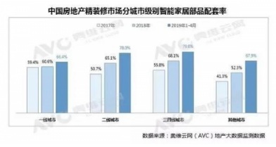 而且隨著精裝房市場(chǎng)在二三四線城市的占比不斷的提升,三四線城市智能家居配套率接近80%,這在之前是難以想象的。