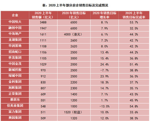 從業(yè)績目標來看,房企目標增長率均值為10%,更注重經(jīng)營質(zhì)量和安全。隨著樓市調(diào)控政策保持穩(wěn)定,疊加疫情的影響,房企業(yè)績設(shè)定目標相對保守,更加注重經(jīng)營質(zhì)量和安全。2020年上半年,從公布銷售目標的28家房地產(chǎn)企業(yè)來看,其目標增長率均值僅為10%,較2019年降低7.4個百分點;其中恒大等龍頭房企主動進行戰(zhàn)略調(diào)整,在高基數(shù)基礎(chǔ)上,充分考慮市場端壓力,2020年銷售目標增速定為個位數(shù),企業(yè)更加關(guān)注高質(zhì)量增長。