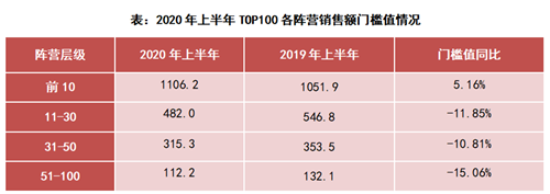 TOP100上半年門檻值112.2億,同比下降15.06%