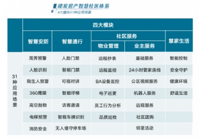 建發(fā)房產(chǎn)所開創(chuàng)的智慧社區(qū)體系,由4大模塊組合而成,從智慧安防、智慧通行、社區(qū)服務(wù)、慧家生活的四個角度,構(gòu)建出現(xiàn)科技感十足家居生活。