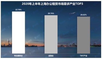 根據(jù)目前的經(jīng)濟產(chǎn)業(yè)結(jié)構(gòu)來看,專業(yè)服務(wù)業(yè)、金融業(yè)、TMT產(chǎn)業(yè)仍將在2020年的后半期繼續(xù)成為上海辦公租賃需求主力支柱。
