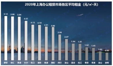 2020年上半年,在新冠疫情沖擊下,全市租金整體持續(xù)處于下行通道。縱觀各區(qū),郊環(huán)地區(qū)的環(huán)比跌幅普遍高于中心城區(qū)。其中,靜安以5.12元/㎡·天的租金均價繼續(xù)成為上半年企業(yè)辦公空間成本最高的區(qū)域。