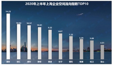 六、2020年上半年上海企業(yè)空間流向綜合指數(shù)排名