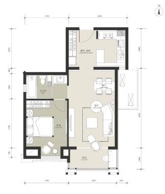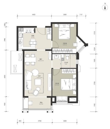 (A03主力戶型,一室二廳一衛(wèi),建面約72.3㎡)