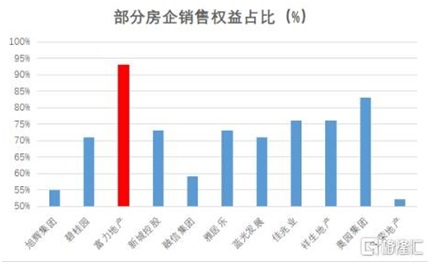 比如,在開發(fā)模式上,富力不會(huì)為了沖刺銷售規(guī)模而進(jìn)行合作開發(fā),以中指院2020年前5月的銷售數(shù)據(jù)為例,在全口徑銷售金額和權(quán)益性銷售金融兩者的差值榜單中,富力地產(chǎn)的銷售額差值為17億元,而行業(yè)均值高達(dá)163億元,也就是說,在房地產(chǎn)行業(yè)普遍選擇合作開發(fā)的時(shí)候,富力地產(chǎn)非常克制,其銷售權(quán)益占比高達(dá)93%。