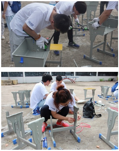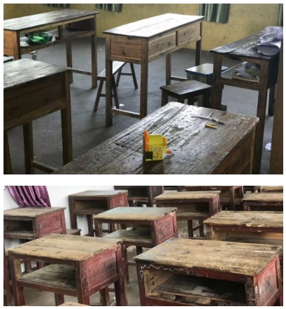 石塘小學(xué)創(chuàng)辦于五十年代,現(xiàn)有的123張桌子、161條椅子均是年代久遠(yuǎn)的老桌椅,經(jīng)常有學(xué)生因?yàn)樽酪纹茽斷腿而站著聽(tīng)課。一張平整的課桌已經(jīng)成為孩子們最簡(jiǎn)單、最樸實(shí)的夢(mèng)想。