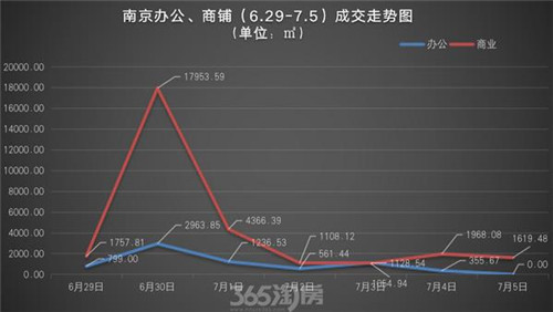 據(jù)南京網(wǎng)上房地產(chǎn)數(shù)據(jù),截至2020年7月4日21:00,南京樓市上周(6月28日-7月4日)商業(yè)地產(chǎn)銷售市場共成交面積36873.44㎡,環(huán)比上升33.73%。