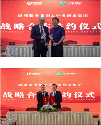 當天下午,中奧物業(yè)母公司中奧到家集團有限公司(以下簡稱中奧到家集團)與綠城服務集團的合作簽約儀式在杭州綠城服務集團總部成功舉行,現(xiàn)場中奧到家集團董事局主席劉建先生與綠城服務集團董事會主席李海榮女士派出雙方簽約代表中奧到家集團副總裁梁兵與綠城服務集團行政總裁吳志華正式簽訂合作協(xié)議。