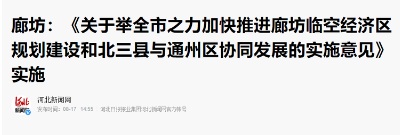2020年8月11日,廊坊市委六屆十次全會(huì)上,審議通過(guò)了《關(guān)于舉全市之力加快推進(jìn)廊坊臨空經(jīng)濟(jì)區(qū)規(guī)劃建設(shè)和北三縣與通州區(qū)協(xié)同發(fā)展的實(shí)施意見(jiàn)》,標(biāo)志著融城加速,北三縣或?qū)⒄讲饺氡本?/P>