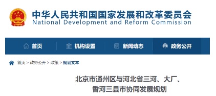 此前的3月17日,國(guó)家發(fā)改委正式發(fā)布《北京市通州區(qū)與河北省三河、大廠、香河三縣市協(xié)同發(fā)展規(guī)劃》,從國(guó)家“頂層設(shè)計(jì)”上推動(dòng)通州和北三縣的“協(xié)同發(fā)展”。事隔5個(gè)月,廊坊市委再度發(fā)力,以市委、市政府文件形式正式印發(fā)施行。全速推動(dòng)區(qū)域協(xié)同發(fā)展,要將北三縣打造成為北京城市副中心的發(fā)展腹地、京津冀協(xié)同發(fā)展的橋頭堡。