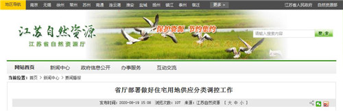 房訊網(wǎng)訊 8月19日,江蘇省自然資源廳發(fā)布《省廳部署做好住宅用地供應(yīng)分類(lèi)調(diào)控工作》,就做好2020年住宅用地供應(yīng)分類(lèi)調(diào)控工作進(jìn)行部署。