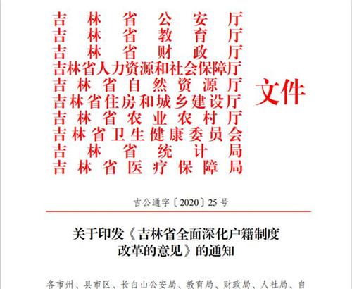據(jù)吉林省公安廳官方微信號(hào)“吉林戶政”25日消息,吉林省公安廳會(huì)同吉林省教育廳、吉林省人社廳等部門出臺(tái)《吉林省全面深化戶籍制度改革的意見》(下稱《意見》)提出,全面取消城市租房落戶對(duì)繳納社保年限限制,非戶籍人口只要在居住地城區(qū)或建制鎮(zhèn)有合法穩(wěn)定住所(含租房居住)即可申請(qǐng)落戶。