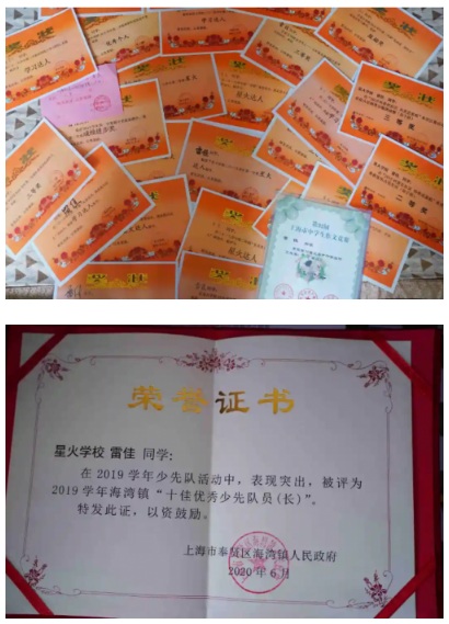 雷佳獲得的獎狀、榮譽證書
