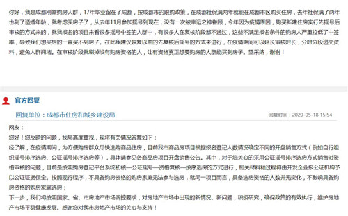 成都市住建局認(rèn)為,按照上述程序,不具備購房資格的購房家庭無法參與選房,就同一項目而言,具備選房資格的人數(shù)并無變化,不影響具備購房資格的購房家庭選房。