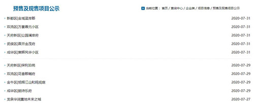 翻閱成都市住建局官網(wǎng)可以看到,今年7月27日后取得預(yù)/現(xiàn)售證的樓盤項目均要求復(fù)核之后再采取搖號選房。涉及項目包括龍泉華潤置地未來之城、金域藍(lán)岸郡、萬景蓉元小區(qū)、公園瀾岸府、首開金茂府、宸暉風(fēng)華小區(qū)、保利泊苑、花香郡樾府、旭輝江山和鳴觀庭、朗詩樂府等。