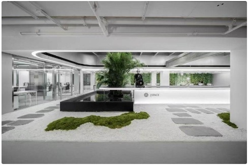 為創(chuàng)造融入自然的環(huán)境,空間內(nèi)設(shè)置了隨處可見綠植造景,使客戶隨時工作在自然環(huán)境之中,體驗(yàn)自然生長的同時心情也為之開闊。