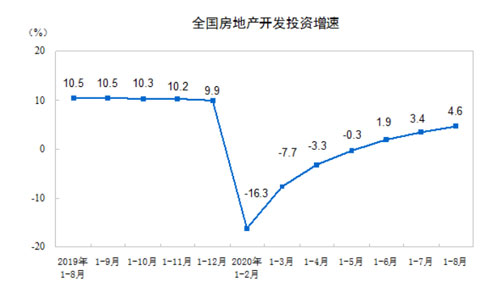 1—8月份,全國房地產(chǎn)開發(fā)投資88454億元,同比增長4.6%,增速比1—7月份提高1.2個百分點。其中,住宅投資65454億元,增長5.3%,增速提高1.2個百分點。
