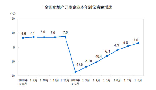 1—8月份,房地產(chǎn)開發(fā)企業(yè)到位資金117092億元,同比增長3.0%,增速比1—7月份提高2.2個百分點。其中,國內(nèi)貸款18016億元,增長4.0%;利用外資101億元,增長24.5%;自籌資金37320億元,增長3.6%;定金及預收款38837億元,增長1.2%;個人按揭貸款18957億元,增長8.6%。