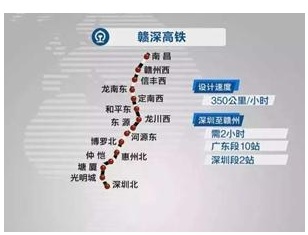 贛深高鐵北起贛州市贛州西站,終抵深圳市深圳北站。待到2021年贛深高鐵通車之時,贛州至深圳乘坐火車時間將由現(xiàn)在的7小時壓縮至2小時。