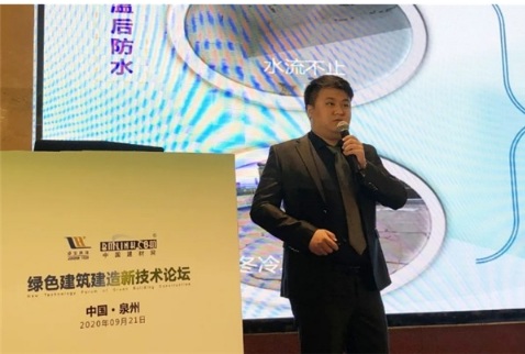 卓寶工程技術(shù)部經(jīng)理周明介紹“貼必定+涂必定”防水服務(wù)系統(tǒng)