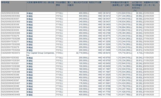 9月24日,長(zhǎng)江實(shí)業(yè)集團(tuán)有限公司發(fā)布消息,李嘉誠(chéng)基金會(huì)有限公司于9月18日、9月21日、9月22日及9月23日,以平均價(jià)每股40.2188港元、39.3403港元、38.5437港元及38.5412港元購(gòu)入長(zhǎng)江實(shí)業(yè)共140萬(wàn)股。因此,李嘉誠(chéng)及長(zhǎng)實(shí)集團(tuán)主席兼董事總經(jīng)理李澤鉅根據(jù)證券及期貨條例,被視作持有長(zhǎng)江實(shí)業(yè)之權(quán)益分別由35.56%增至35.59%,由35.62%增至35.66%。