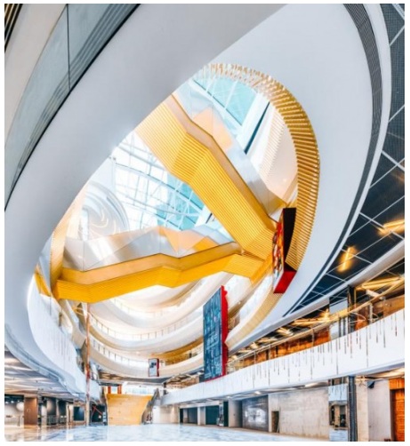 上海廣場的煥新更迭,并未只停留在消費層面的滿足,創(chuàng)新地打造“無邊界的藝術消費空間”的商業(yè)模式,先是在設計理念上以建筑語言對“無邊界”的概念進行強化,將上海廣場作為“城市延伸”的基調,宛若城市之窗的多層高門頭,結合大面積的玻璃幕墻外立面,讓室內空間自然無邊界地延展成城市公共功能的互動平臺。