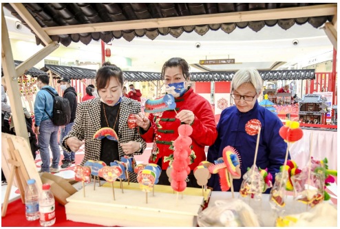 在啟動(dòng)儀式同步開(kāi)啟的非遺體驗(yàn)市集,面塑傳承人依托世界冠軍陳露的花滑經(jīng)典造型,捏出栩栩如生的面塑作品,剪紙藝術(shù)家?guī)ьI(lǐng)青少年體驗(yàn)者完成冰雪主題工藝作品……眾多跨圈聯(lián)動(dòng)讓各年齡層客群能在萬(wàn)達(dá)廣場(chǎng)獲得趣味生活的美好體驗(yàn)。