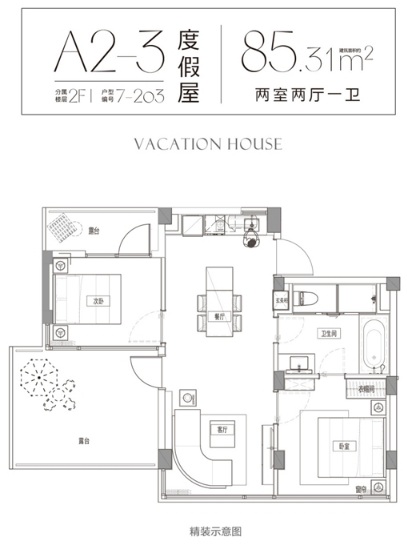 度假屋主力戶型裝修示意圖