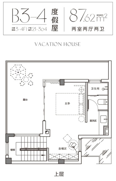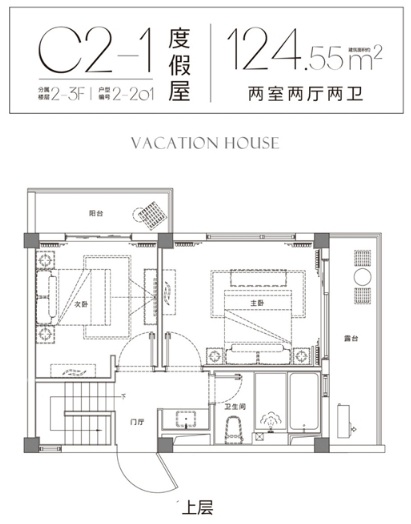 C系列的戶型,尺度感最佳,主力建面約124-125㎡,平層與躍層皆有。