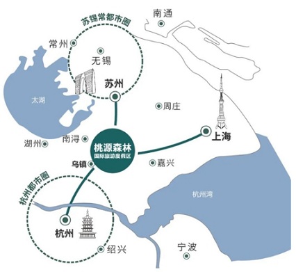 桃源森林國(guó)際旅游度假區(qū),位處滬蘇杭黃金三角中心,長(zhǎng)三角一體化示范區(qū)核心位置。