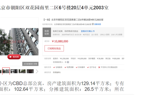 據(jù)悉,2020年8月27日同一被執(zhí)行人的北京市第三中級人民法院(2020)京03執(zhí)恢193號的債權人Z公司對賈躍亭名下位于北京市朝陽區(qū)XX花園南里二區(qū)XX號樓XX層XX單元XX室房產,拍賣變價款1088萬元申請參與分配。