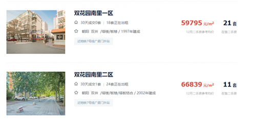 貝殼找房顯示,該小區(qū)12月二手房均價為66839元/㎡,而雙花園南里一區(qū)12月二手房均價為59795元/㎡。