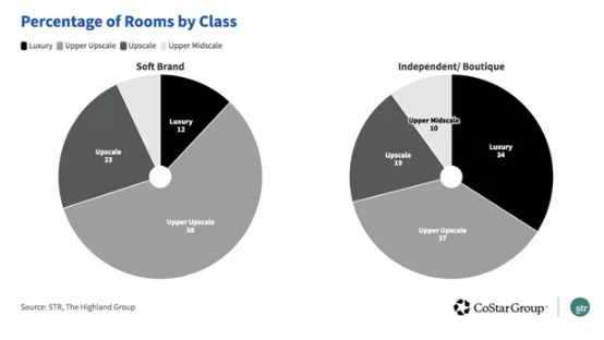 這里需要指出的是,The Highland Group將軟品牌酒店定義為設計獨特、獨立命名和品牌并隸屬于連鎖品牌(特許經(jīng)營模式)的酒店;并指出軟品牌增長取決于酒店集團進軍更多細分市場的戰(zhàn)略規(guī)劃。