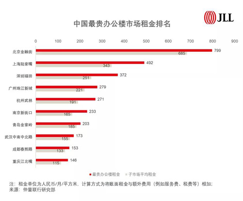 而北京作為中國大陸唯一進(jìn)入榜單前十名的城市,除了金融街、CBD和中關(guān)村,還有多個租金水平靠前的子市場未納入追蹤范圍,如果對比全球最貴辦公樓市場租金水平來看,這些主要商圈也足以進(jìn)入全球前30。