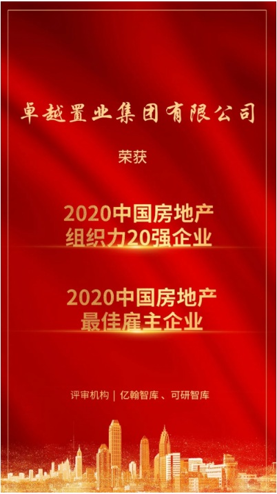 2020年12月29日,在國(guó)家會(huì)展中心上海洲際酒店在上海隆重舉行召開(kāi)的“共創(chuàng)組織力——2020年中國(guó)房地產(chǎn)業(yè)組織管理峰會(huì)暨中國(guó)房地產(chǎn)企業(yè)(首屆)CHO聯(lián)席會(huì)”上,卓越地產(chǎn)榮獲 “2020中國(guó)房地產(chǎn)最佳雇主企業(yè)”,成為了眾人眼中的焦點(diǎn)。