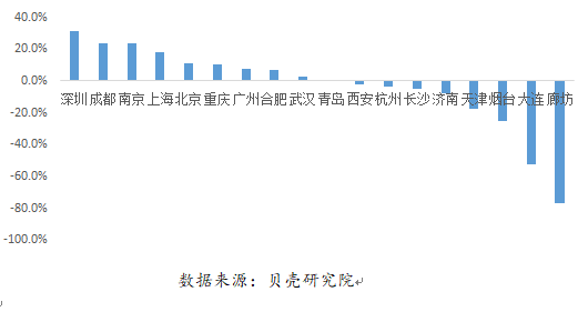鏈家重點城市1月周均二手住宅實際成交較去年12月周均變動