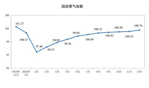 1月18日,國家統(tǒng)計(jì)局發(fā)布“2020年1-12月全國房地產(chǎn)開發(fā)投資和銷售情況”。其中顯示,商品房供需兩端以及房企到位資金等指標(biāo)均恢復(fù)較快,分別于三、四季度超過2019年同期。此外,自2020年2月以來,房地產(chǎn)開發(fā)景氣指數(shù)(國房景氣指數(shù))持續(xù)上升,并于12月達(dá)到全年峰值100.76,比11月份提高0.21點(diǎn)。